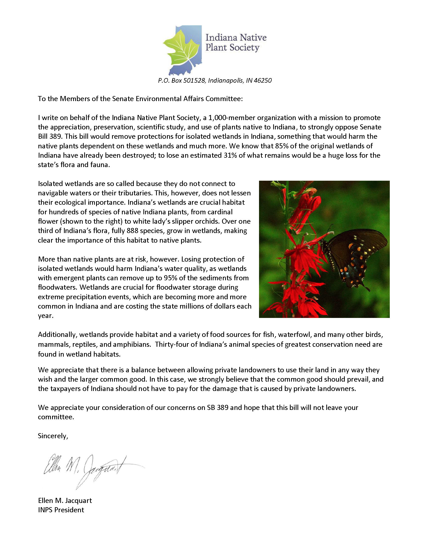 The INPS Council and Board voted to oppose Senate Bill 389 which would repeal protections for isolated wetlands in Indiana.