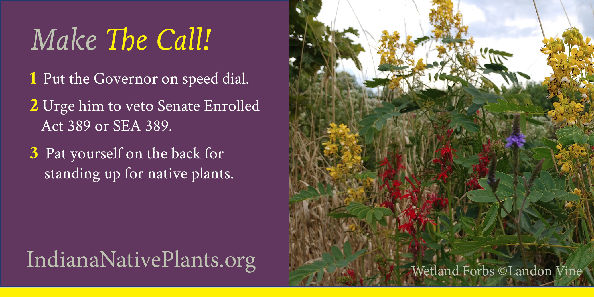 This bill will negatively impact Indiana’s few remaining wetlands. Wetlands are invaluable habitat that support countless species of Indiana birds, mammals, reptiles, amphibians, and pollinators. They are key to sustainable, thriving habitats that also protect our drinking water and help buffer our communities against flooding.