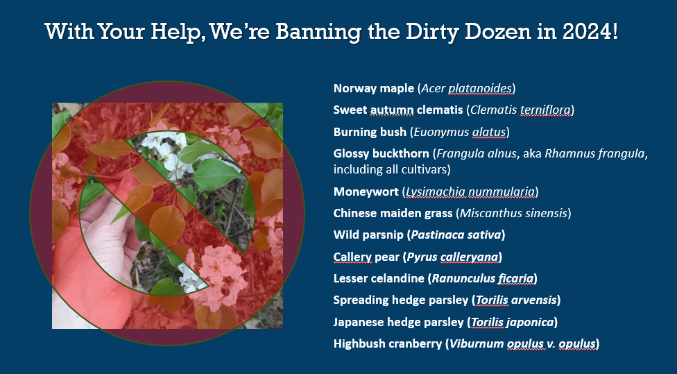 It’s time to ban another 12 highly invasive plants in Indiana! We’ve succeeded in banning 44 highly invasive plants from the nursery trade. Let’s get ready to go after the rest.