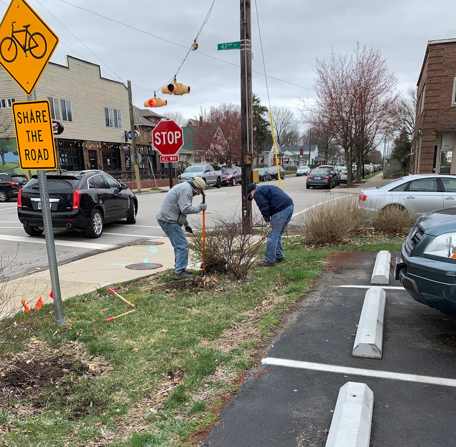 On a cold March Saturday in 2022, INPS and Master Gardener volunteers are renewing the landscaping around the St. Vincent de Paul Boulevard Place Food Pantry. Here’s what they have accomplished so far: